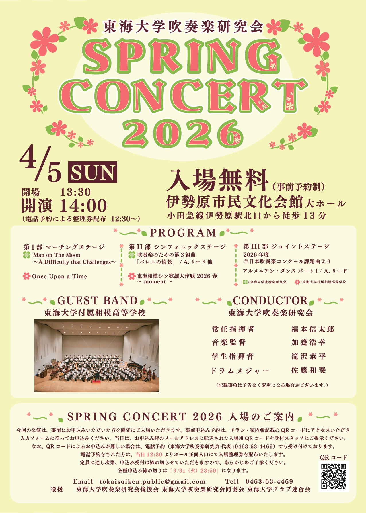 「東海大学吹奏楽研究会SPRING CONCERT 2026」に本校吹奏楽部がゲスト出演いたします。皆様お誘いあわせの上、是非ご来場ください。